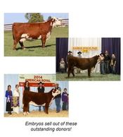 Thank you for your part in making this a successful venture. We have embryos for sale please contact us for information on flushes or right to flush our donors.
